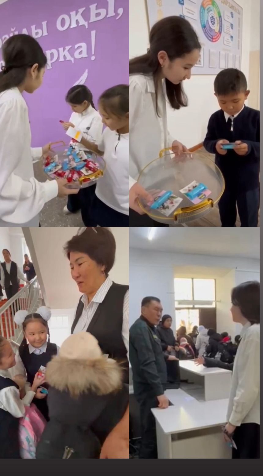 Іс-шара барысында Парламент мүшелері тәттілерге жапсырылған шағын тапсырмалар дайындады. Әр оқушы тәтті таңдай отырып, ондағы жазылған жақсылық жасауға бағытталған тапсырманы орындады.